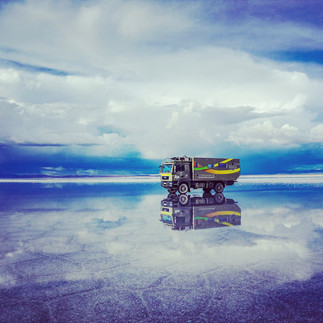 Wir schweben im Himmel, berühren die Wolken, finden uns inmitten eines Sees oder sind in der Antarktis... Die größte Salzpfanne der Welt ist atemberaubend, großartig, riesig und der bezauberndste Platz der Erde! Sprachlos sind wir, diese Schönheit ist nicht in Worte zu fassen. Einzigartig, facettenreich und einsam ist es hier. Die Stunden vergehen wie im Fluge, weil man nicht genug von ihr bekommen kann, wir fotografieren, staunen, genießen.